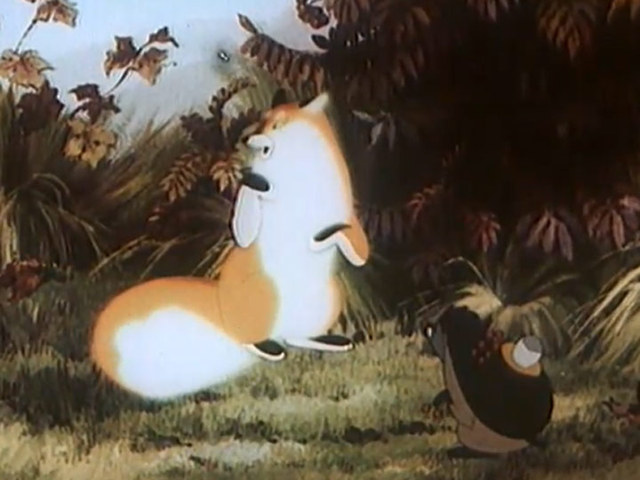 Хитрая Лисица, пробираясь в сад за виноградом, попадает в силки. Притворившись мертвой, она спасает себя от расправы, но не отказывается от воровства. Обманув простадушного Ежика, Лиса заставляет его таскать для нее из сада виноград. Ежик также попадает в силки. Увидев, что Лиса его обманула, он удерживает ее за хвост до прихода садовника.